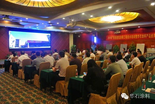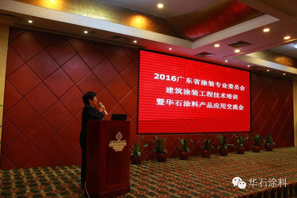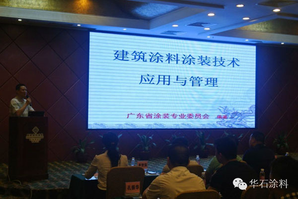 4月8日上午,“2016年廣東省涂裝專業(yè)委員會建筑涂料工程技術培訓暨華石涂料產(chǎn)品應用交流會”在江門麗宮酒店舉辦,本次培訓交流會由廣涂協(xié)主辦,華石涂料承辦,由華石涂料市場部黃經(jīng)理主持會議。